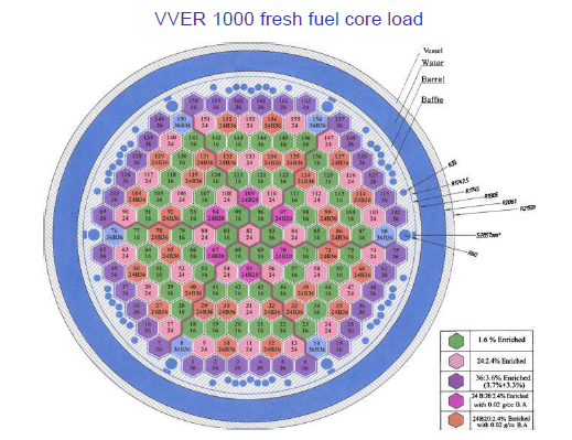 Trong các lò phản ứng hiện tại, 235U chỉ được làm giàu cao nhất tới 4.7-5.2%. Trong lò, người ta xếp xen kẽ các thanh nhiên liệu với các hàm lượng khác nhau, càng ở tâm, hàm lượng 235U càng thấp. Đó là vì phản ứng phân rã hạt nhân xảy ra theo kiểu thác lũ và người ta phải điều tiết nhịp độ của nó để dung hòa giữa độ an toàn và hiệu quả (về công suất).