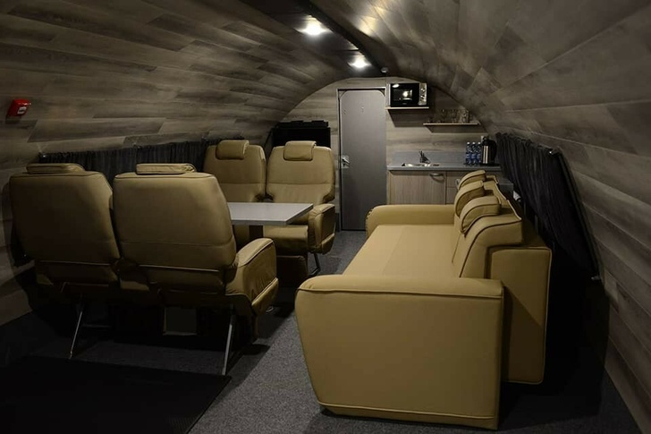 Trong IL-18, được thiết kế cho tối đa tám người ở lại qua đêm, có ba phòng ngủ và hai ghế sofa trong sảnh.Cả hai máy bay đều có phòng tắm với vòi sen, tủ lạnh, lò vi sóng và bát đĩa, giống như trong các phòng khách sạn thông thường. Tính năng chính ở đây là quyền truy cập vào buồng lái, nơi cư dân xoay vô lăng, bật công tắc bật tắt và trên IL-18, họ cũng nghe đoạn ghi âm radio.
