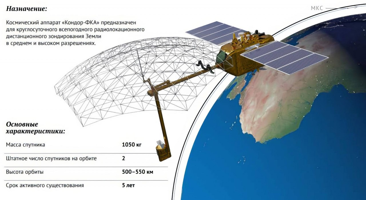 Các chuyên gia của hãng Ruselectronics cho biết vệ tinh Kondor-FKA được trang bị ăng-ten phản xạ kiểu ô, bảo đảm 24/24 quan sát bề mặt Trái đất trong mọi điều kiện thời tiết ở vị trí song song với quỹ đạo bay. Ở dải quan sát, vệ tinh này có thể chi tiết hóa các mục tiêu, xác định được chủng loại và số lượng trang bị vũ khí của đối phương.