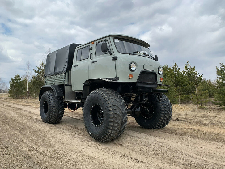 Khung gia cố, hệ thống treo lò xo lá hoàn toàn, hệ thống bơm lốp, ổ khóa, phanh đĩa trục trước, cửa sổ trời lớn là trang bị tiêu chuẩn của xe tuyết và đầm lầy.