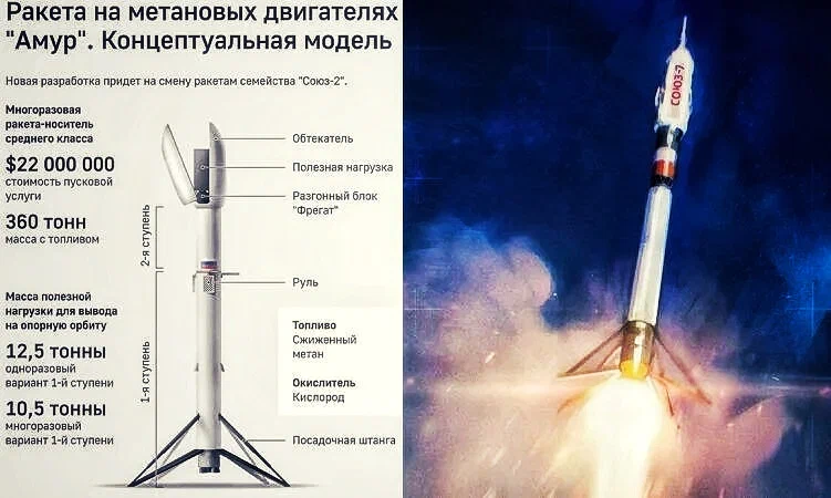 "Amur-LNG" sẽ thay thế toàn bộ họ phương tiện phóng "Soyuz-2". Quá trình thiết kế tên lửa metan tái sử dụng Amur-SPG bắt đầu vào năm 2020 theo đơn đặt hàng của Roscosmos. Trong trường hợp này, điều kiện chính là khả năng sử dụng nhiều lần đối với tầng đầu tiên. Một động cơ oxy-mêtan sẽ giúp thực hiện nó.