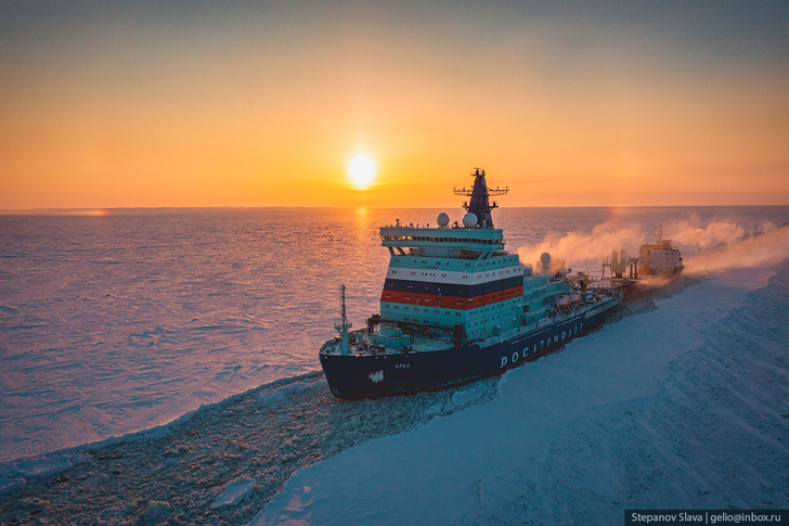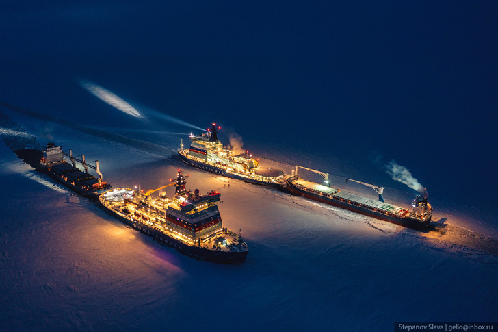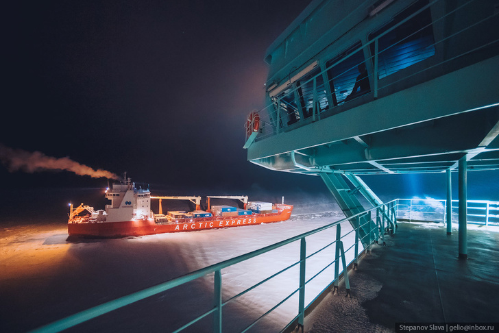 14. Đơn xin hoa tiêu được lập từ rất lâu trước chuyến đi. Tàu phá băng không ở yên trong cảng - thông thường, sau khi hộ tống một tàu, chúng đón một tàu khác và lên đường trở về. Hầu hết hàng hóa là các sản phẩm dầu mỏ, khí đốt, các sản phẩm từ các doanh nghiệp của Norilsk Nickel, một trong những nhà sản xuất niken, palađi và bạch kim lớn nhất thế giới. Về cơ bản, các tàu phá băng hạt nhân của dự án 22220 hoạt động ở phía tây của Tuyến đường biển phía Bắc - thuộc vùng Ob-Yenisei của Biển Kara.