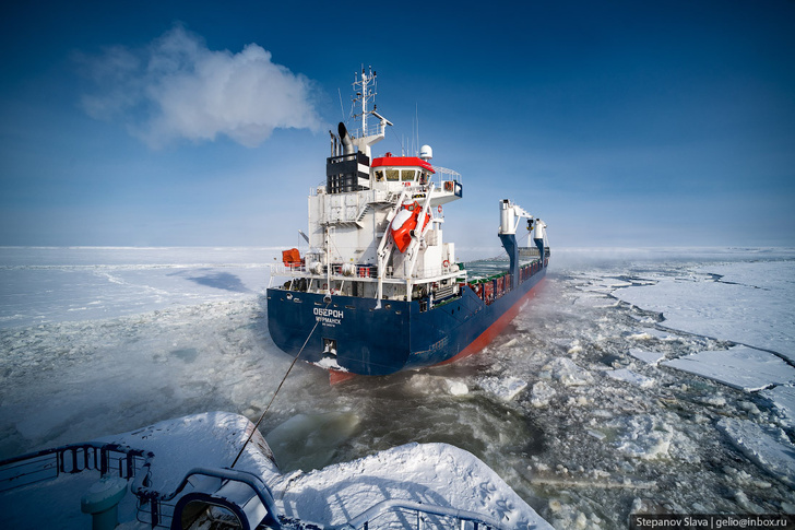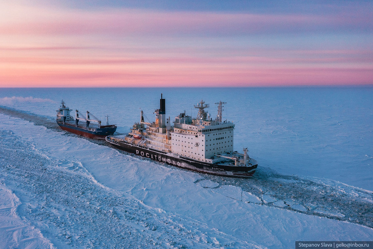 Phương thức vận chuyển hàng hóa chủ yếu dọc theo tuyến đường biển phía Bắc là có tàu phá băng đi kèm. Sau khi chế tạo những người khổng lồ hạt nhân thuộc sê-ri dự án 22220, việc hướng dẫn tàu qua băng trở nên dễ dàng hơn nhiều. Những tàu phá băng này được gọi là những kẻ chinh phục mới của Bắc Cực. Đối với họ, băng thậm chí ba mét không phải là một trở ngại. Tàu phá băng chạy bằng năng lượng hạt nhân - ở những phần này rất khó tiếp nhiên liệu cho tàu và các nhà máy điện hạt nhân có quyền tự chủ lớn - trong một lần sạc, con tàu có thể hoạt động tới 7 năm.