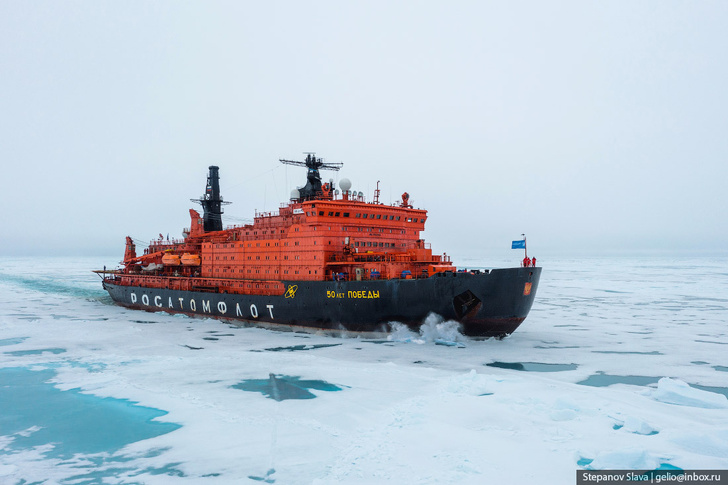 57 . Trước khi dự án 22220 ra đời, tàu phá băng hàng đầu của Rosatomflot là 50 năm chiến thắng.