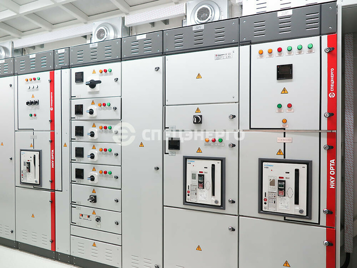 - RUNN dịch vụ một chiều 0,4 kV dựa trên NKU "ORTA" (sự phát triển riêng của LLC "SPETSENERGO") với loại phân tách nội bộ 3b; - hai máy biến áp khô - Thiết bị đóng cắt 6 kV dựa trên tủ KRU-T.