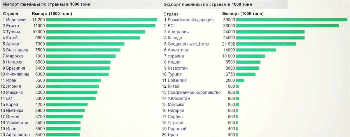 Vào tháng 8 năm 2021, Nga đã vận chuyển 5,2 triệu tấn lúa mì và trở thành nước dẫn đầu về chỉ số này, vượt qua Hoa Kỳ, Canada, Úc và các nước xuất khẩu khác.