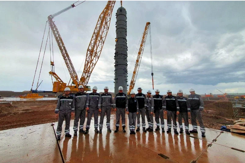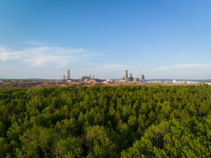 Gần đây, tại địa điểm của doanh nghiệp vẫn còn rừng taiga bất khả xâm phạm. Và bây giờ nó là một lãnh thổ rộng lớn rộng 200 ha với nhà chứa máy bay, vô số giàn giáo bao quanh các đường ống của nhà máy tương lai, rất nhiều thiết bị, kết cấu kim loại và hàng nghìn công nhân.