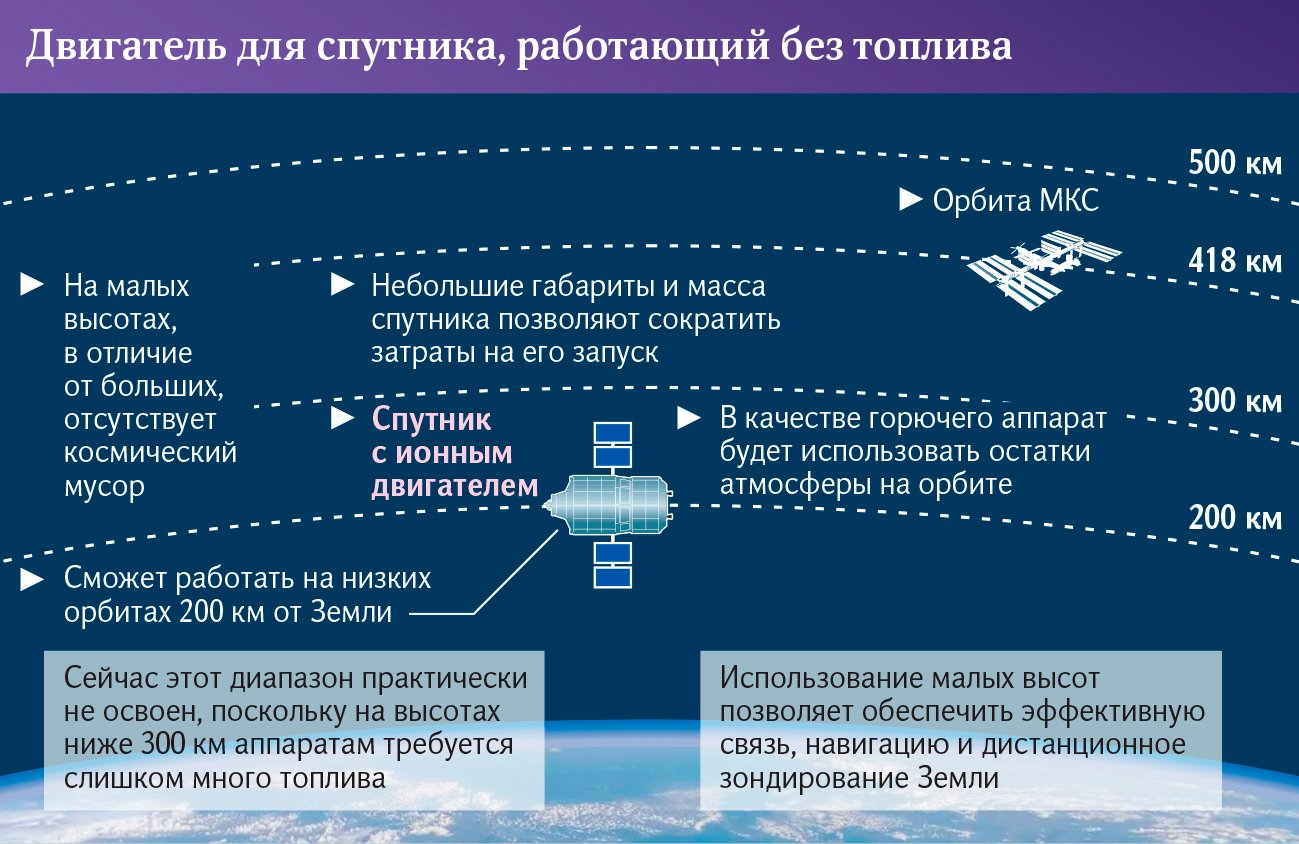 Động cơ ion thực ra không phải là chủ đề mới. Nó đã và đang tồn tại hiện nay trên các trạm quĩ đạo của nhiều quốc gia. Từ thời Liên Xô, các kỹ sư Xô viết đã tạo ra nền tảng cho việc chế tạo một loại động cơ ion độc đáo và hiện nay, các nhà khoa học Nga đã tạo ra động cơ ion cho vệ tinh, vốn không có loại tương tự trên thế giới. Các động cơ này hoạt động không cần nhiên liệu mang theo từ trái đất, chúng sử dụng tàn dư của khí quyển trên quỹ đạo cực thấp làm nhiên liệu. Hiện nay, quĩ đạo cực thấp thực tế chưa được phát triển vì ở độ cao dưới 300km, các vệ tinh cần quá nhiều nhiên liệu để hiệu chỉnh quĩ đạo. Với những động cơ ion thế hệ mới, các vệ tinh của Nga sẽ có thể ở trên quỹ đạo cực thấp (dưới 200km cách bề mặt trái đất) trong một thời gian rất dài, có thể lên đến vài chục năm. Hiện nay, các vệ tinh hoạt động ở quĩ đạo thấp (400-600km) chỉ có thời gian hoạt động tối đa là 2 năm, còn ở quĩ đạo cực thấp thì chỉ tính bằng tháng. Giám đốc dự án Vyacheslav Temkin tự tin khẳng định: “Một động cơ như vậy không cần thêm nhiên liệu. Bẫy ion kiểu mở đảm bảo hoạt động của động cơ bằng cách sử dụng tàn dư của khí quyển trong không gian thấp. Nó tạo ra một trường điện từ, đốt cháy plasma trong đó các khí trơ bị ion hóa. Các ion thu được có thể được trường điện từ thu giữ một cách hiệu quả. Các thí nghiệm của chúng tôi cho thấy quá trình đốt cháy plasma ổn định ngay cả trong điều kiện chân không sâu”.