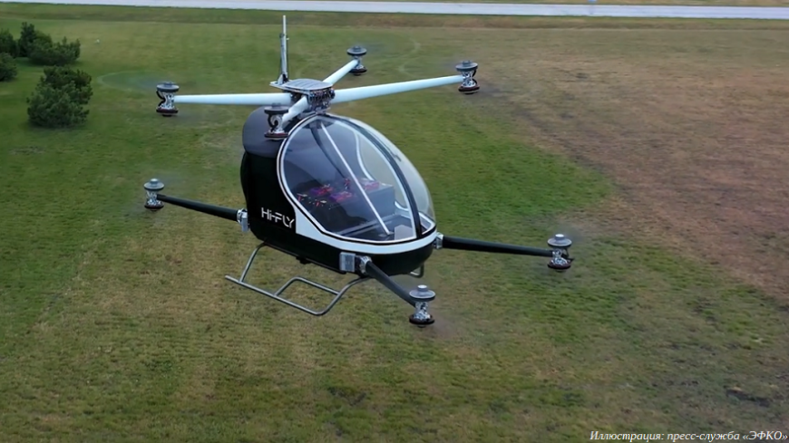 Taxi hàng không đang được tạo ra như một phần của sáng kiến Tương lai lành mạnh, dịch vụ báo chí của nhóm các công ty EFKO báo cáo . Hi-Fly Taxi nguyên mẫu đã có thể thực hiện các chuyến bay không người lái với phạm vi lên tới 15 km và chở hàng hóa nặng tới 120 kg. Trong tương lai, nó được lên kế hoạch để tạo ra các lựa chọn hành khách và hàng hóa ( trong hình minh họa bên dưới ). Loại thứ hai được lên kế hoạch sản xuất trong y tế, chữa cháy, sơ tán, cảnh sát và các sửa đổi khác.