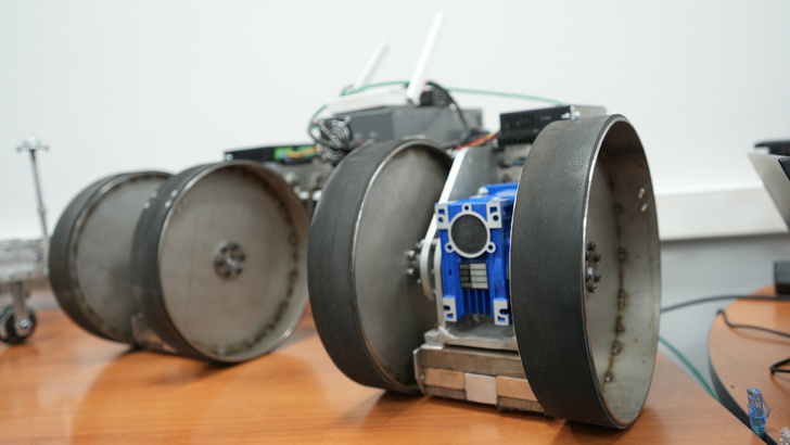Một sự phát triển thú vị khác là một robot được thiết kế để đo khoảng cách giữa các bức tường trong lò phản ứng khử hydro bằng propan. Nói một cách đại khái, lò phản ứng này có chiều cao bằng ba chiếc kính của tòa nhà 5 tầng, được lồng vào nhau giống như một con búp bê làm tổ. Một chất xúc tác rất đắt tiền được đổ vào giữa các bức tường, và điều quan trọng là khoảng cách giữa các bức tường của “kính” bên ngoài và bên trong ở tất cả các phía là hoàn toàn bằng nhau, nếu không chất xúc tác bắt đầu quá nóng, sụp đổ và cháy xuyên qua các bức tường lò phản ứng.