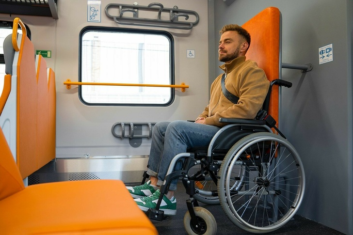 Đối với hành khách ngồi trên xe lăn, các đường dốc gấp được lắp đặt ở toa đầu để cho phép xe lăn tiếp cận cabin. Bên trong xe có chỗ để cố định xe đẩy. Ngoài ra còn có phòng vệ sinh có tay vịn gấp và nút khẩn cấp để liên lạc với tài xế.