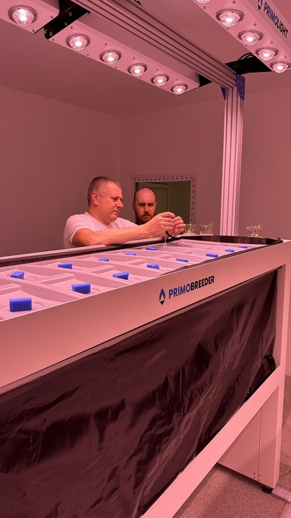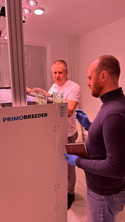Nền tảng Meristem ra mắt ở Chelyabinsk Vào ngày 17 tháng 10 năm 2023, tại Chelyabinsk - một thành phố khác - Nền tảng Meristem - đã được lắp đặt và hiện đang hoạt động, quá trình trồng khoai tây trong ống nghiệm đầu tiên đã diễn ra trên “giường” - trên nền tảng của Meristem. Trong ảnh - Alexey Veniaminovich Rutz, nhà nghiên cứu junior tại bộ phận trồng khoai tây của Viện nghiên cứu Chelyabinsk, và Alexey Kovalev, người đứng đầu Agross NPO.