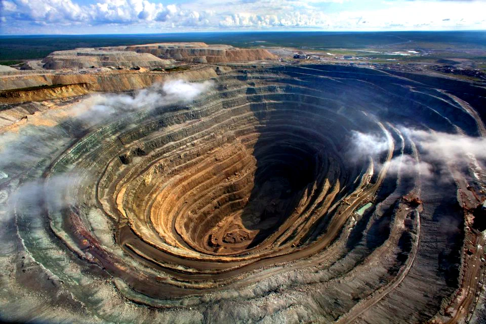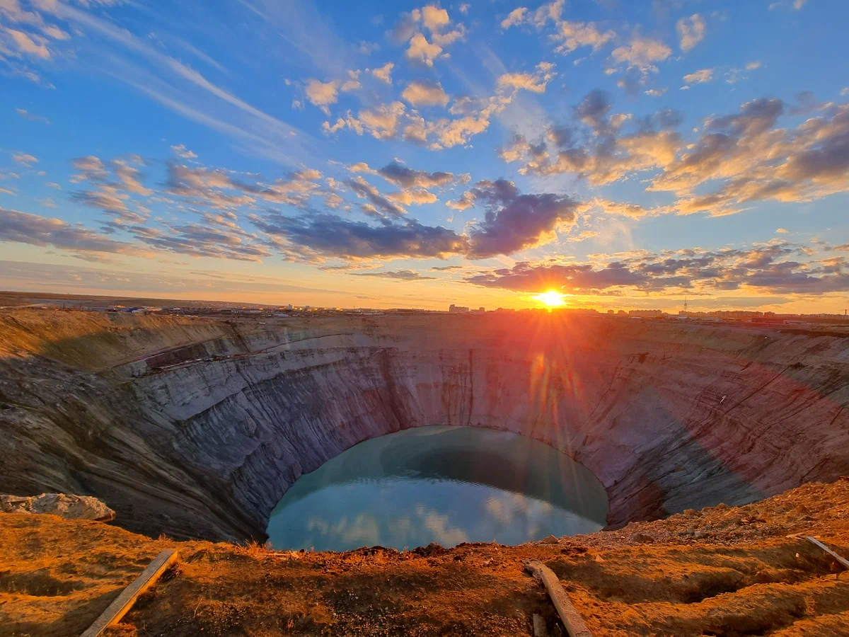 Có lẽ đó là lý do tại sao tiền gửi nhận được một cái tên như vậy. Mỏ đá có đường kính 1,2 km và độ sâu 525 m thực sự giống như một tiểu vũ trụ riêng biệt.