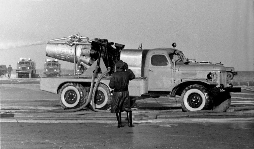 Mẫu AGVT-100, được tạo ra ở Liên Xô vào những năm 1960, được coi là máy chữa cháy bằng nước bằng khí đầu tiên trên thế giới. Là một bình chữa cháy, nó sử dụng động cơ phản lực VK-1 từ các máy bay chiến đấu MiG-15 đã cạn kiệt tài nguyên. Sau đó, những chiếc xe có động cơ RD-9F, R11V-300, D-20 được sản xuất theo lô nhỏ.