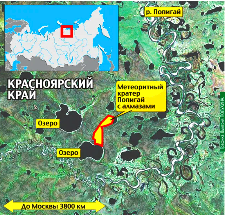 Nghiên cứu về một miệng núi lửa khổng lồ gần khu định cư Popigai ở biên giới Lãnh thổ Krasnoyarsk và Yakutia bắt đầu vào năm 1946. Tuy nhiên, phải đến năm 1970, giá trị chính của nơi này mới được phát hiện - những mỏ kim cương va chạm khổng lồ. Nó là sự kết hợp của nhiều pha cacbon khác nhau được hình thành từ than chì khi một thiên thạch va vào Trái đất. Hiện tại, Popigai astrobleme (một miệng hố va chạm có đường kính hơn 2 km) là nơi duy nhất có chứa kim cương do va chạm có thể phục hồi được trên Trái đất. Chúng tôi đã nói chi tiết về lịch sử nguồn gốc và nghiên cứu về miệng núi lửa ở đây.