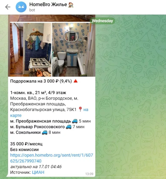 Telegram bot HomeBro (Ảnh: @homebro_rent_bot)