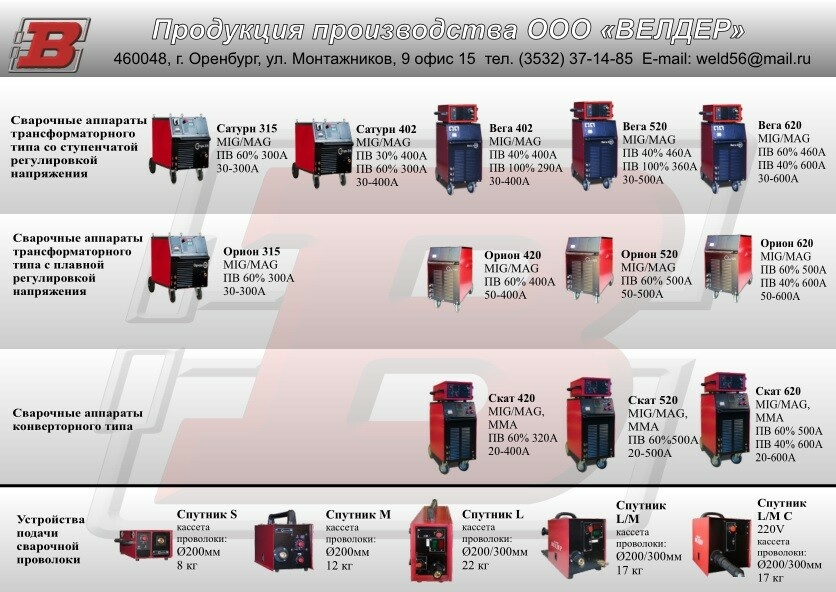 Sản phẩm ông ty Velder LLC. Công ty tham gia các hội nghị khoa học kỹ thuật, nghiên cứu kinh nghiệm vận hành thiết bị hàn do công ty sản xuất, phát triển các sản phẩm mới và hiện đại hóa các sản phẩm hiện có, có tính đến thông tin nhận được từ người dùng.