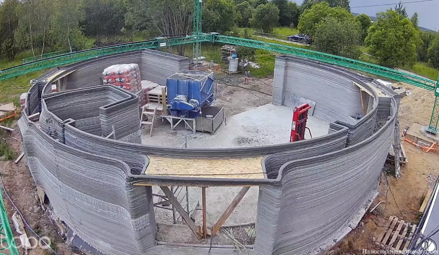 Việc xây dựng được thực hiện trực tiếp tại chỗ, sử dụng công nghệ in bê tông 3D tại hiện trường. Kết quả là một tòa nhà nguyên khối với nền móng được gia cố, cửa sổ nhìn toàn cảnh và mái nhà có thể hoạt động được, dịch vụ báo chí của công ty 3D-Stroy đưa tin.