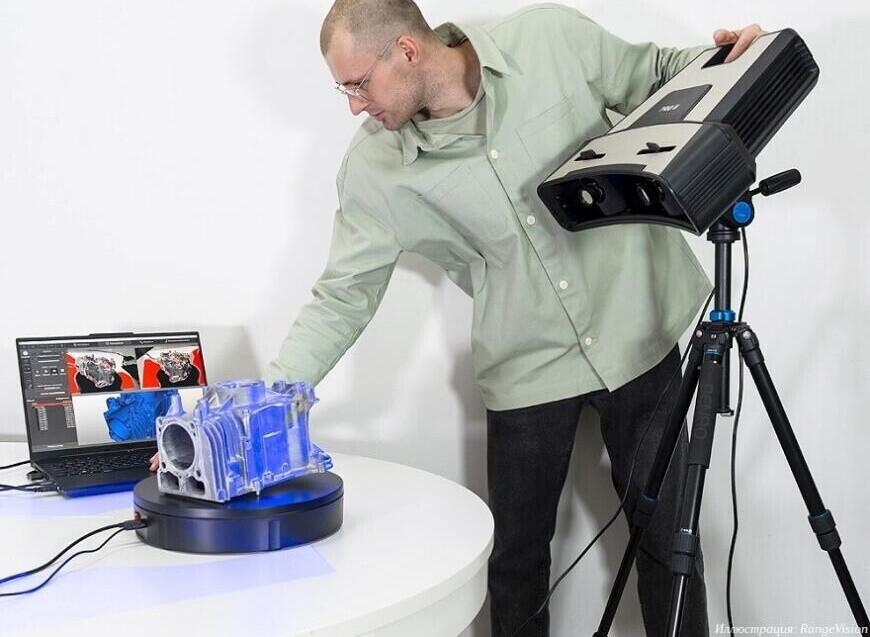 Máy quét 3D RangeVision Pro, được hỗ trợ bởi công nghệ chiếu sáng có cấu trúc, được sử dụng rộng rãi trong kiểm soát độ chính xác hình học của sản phẩm, tạo mẫu, thiết kế ngược, tạo bản sao 3D của các vật trưng bày trong bảo tàng và theo dõi động các biến dạng và khuyết tật. RangeVision Pro 2 được cập nhật mang lại độ chính xác và năng suất đo cao hơn cùng với tính công thái học được cải thiện.