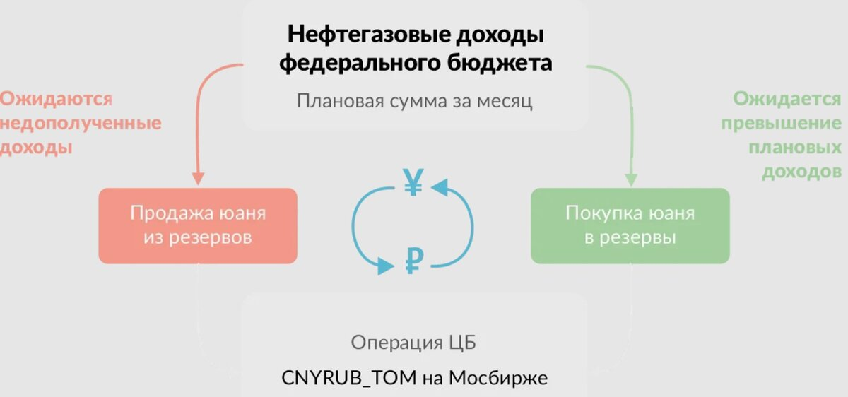 Vì vậy, nếu doanh thu từ dầu khí nhỏ thì tiền từ Quỹ phúc lợi quốc gia dưới dạng nhân dân tệ sẽ được bán để bù đắp cho số rúp còn thiếu trong ngân sách. Ngược lại, nếu doanh thu từ dầu khí lớn thì Bộ Tài chính sẽ mua nhân dân tệ bằng đồng rúp.