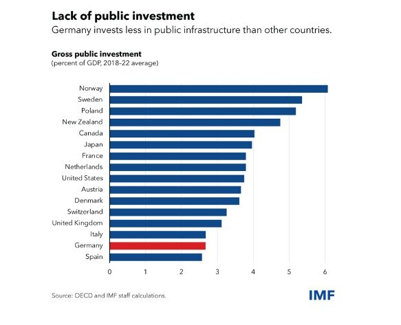 Theo IMF, yếu tố cơ bản tiêu cực tiếp theo của nền kinh tế Đức là đầu tư không đủ vào cơ sở hạ tầng công cộng.