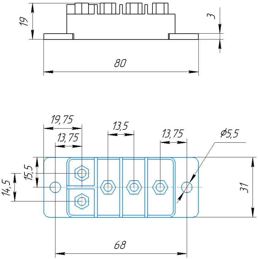 Từ giữa năm 2021 đến nay, các chuyên gia của Công ty Cổ phần "Optron-Stavropol" đã phát triển và đưa vào sản xuất nối tiếp loạt mô-đun diode DM đa chip với nhiều công suất, pha, thiết kế khác nhau sử dụng công nghệ khuếch tán để thu được tinh thể, dày- công nghệ phim, công nghệ hàn nhóm tinh thể bằng cách sử dụng các loại lò nung khác nhau, công nghệ laser, v.v. Vào giữa năm 2022, mô-đun diode 3 pha nhỏ gọn DM3.3-50-16 đã được phát triển với đế (đế) nhôm điện môi, sử dụng đế gốm dẫn nhiệt kim loại AL 2 O 3 và ALN, cho dòng điện từ điện áp 10 đến 100 A lên tới 1600 V (Hình 1).