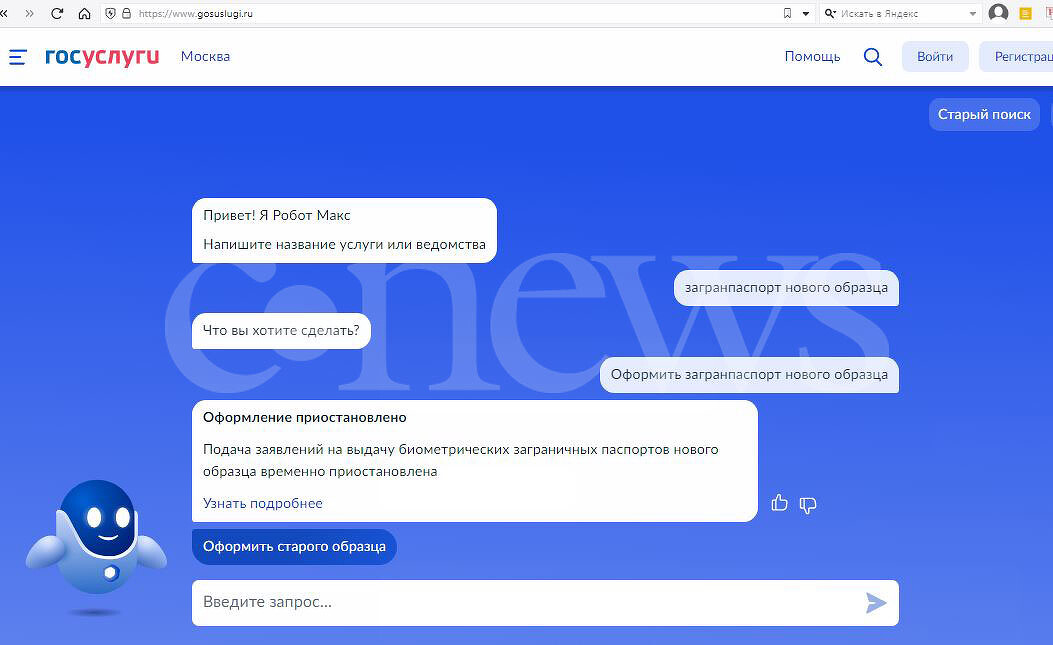 Việc thay đổi vùng khi liên lạc với trợ lý ảo State Services không ảnh hưởng gì cả. Một thử nghiệm của nhóm biên tập CNews cho thấy ít nhất người dân ở Moscow, St. Petersburg, vùng Irkutsk và Novosibirsk sẽ nhận được câu trả lời chatbot giống nhau. Cuộc gọi đến bộ phận trợ giúp “Tài liệu của tôi” cũng dẫn đến kết quả tương tự - các chuyên gia báo cáo rằng hiện tại chỉ có thể lấy được hộ chiếu quốc tế kiểu cũ.