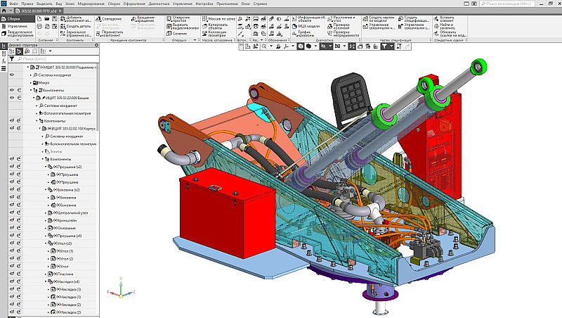 Mô hình đã được tham số hóa đầy đủ để có thể tái tạo các chuyển động cơ bản của bộ truyền động bằng cách sử dụng các biến số. Các chuyên gia cũng lưu ý việc sử dụng mô-đun Ống mềm KOMPAS-3D từ Ứng dụng Thiết bị: Đường ống, triển khai xuất sắc các dây và ống áp suất cao, các bộ phận lắp ráp với các bộ phận hoàn toàn cục bộ.