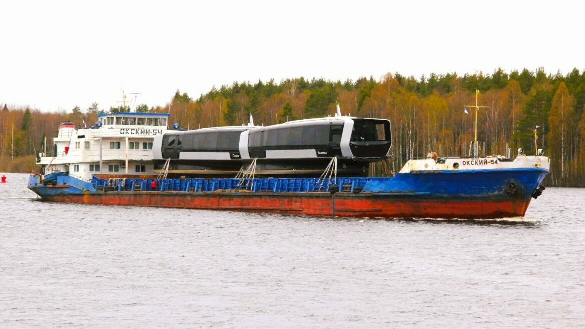 Nhà máy đóng tàu Emperium (vùng Leningrad) đã gửi hai tàu điện cuối cùng của dự án Ecobus - Kamenka và Pakhra - đến Moscow trên tàu chở hàng khô Oksky 54.
