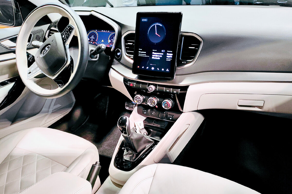 Lada Aura đang đến Lada Aura có chiều dài cơ sở tăng 25 cm so với Lada Vesta, khả năng cách âm được cải thiện, tựa tay phía sau có thể thu vào, nội thất bọc da thật màu trắng, hệ thống âm thanh cao cấp và vô lăng có sưởi hai tông màu. Aura có động cơ 1,8 lít, công suất 122 mã lực, gắn hộp số CVT. Serial Lada Aura, ngoài túi khí, cũng sẽ nhận được hệ thống ổn định ESP.