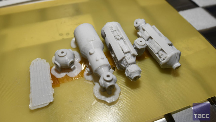 “Chúng tôi bắt đầu gõ từ trước khi hạ cánh. Chúng tôi đã tạo ra mười chín mẫu khác nhau, tất cả chúng đều rất thành công. Trong số đó có các phần tử cấu trúc, bả vai, tượng bán thân của Gagarin, quân cờ, biểu tượng của các trường đại học tham gia thí nghiệm này. Chúng tôi thậm chí đã tạo ra một thành phần kỹ thuật: hạt trong máy khoan siêu nhỏ của chúng tôi bị vỡ và hạt này ngay lập tức được cắt ra khỏi mẫu mới in và nó rất hữu ích khi sửa chữa máy khoan,” Oleg Artemyev cho biết.