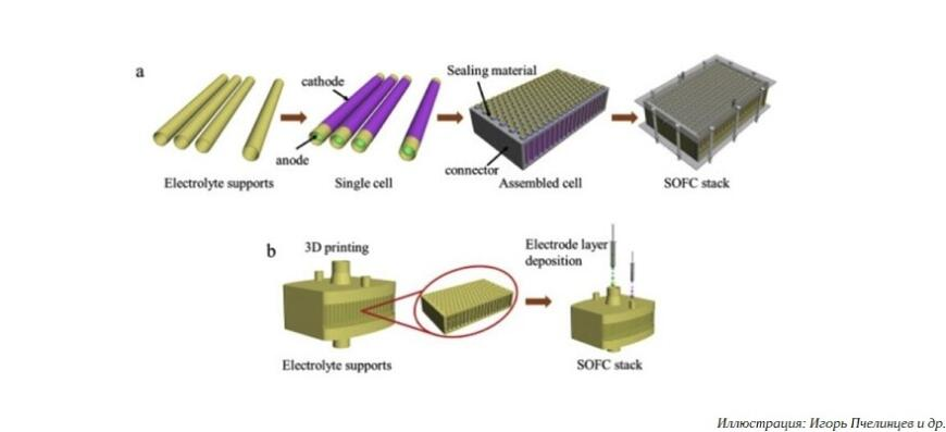 Cấu trúc chính xác là khía cạnh mà các tác giả của nghiên cứu Skoltech đã nghiên cứu. Họ làm đồ gốm từ hai vật liệu phổ biến dưới dạng cấu trúc mạng lưới phân cấp. Loại hình học phức tạp này làm tăng độ dẫn ion; nó không thể có được nếu không có máy in 3D. Vật liệu được sử dụng là zirconi được ổn định bằng oxit scandium hoặc oxit yttrium. Tùy chọn đầu tiên phù hợp với pin nhiên liệu có nhiệt độ hoạt động là một nghìn độ C, tùy chọn thứ hai - 750 độ.