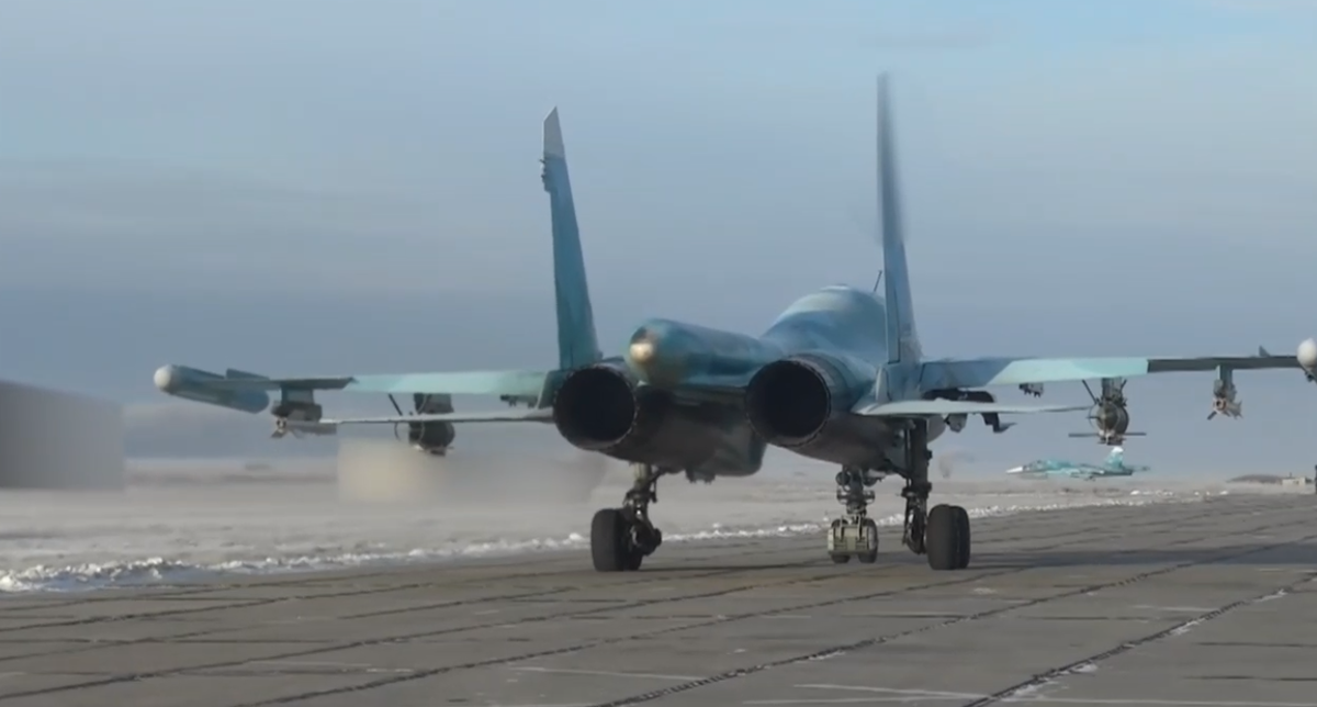 Su-34 với hai chiếc FAB-250 và UMPC. Quay phim của Bộ Quốc phòng Liên bang Nga