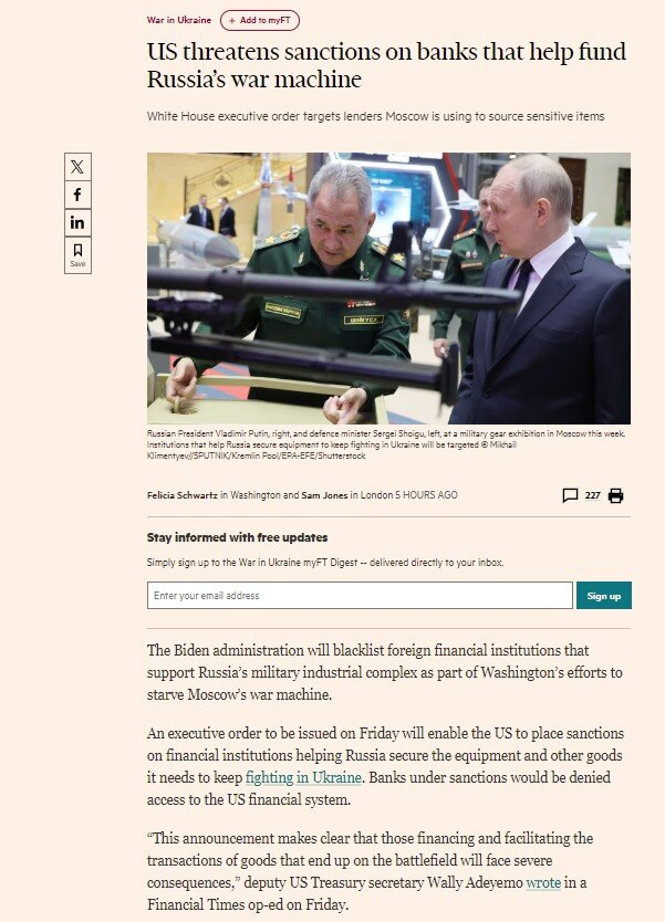 Tức là họ đang thực hiện một bước đi chưa từng có - bất kỳ ai dám vi phạm các lệnh trừng phạt chống Nga do Hoa Kỳ áp đặt sẽ không còn một xu nào!