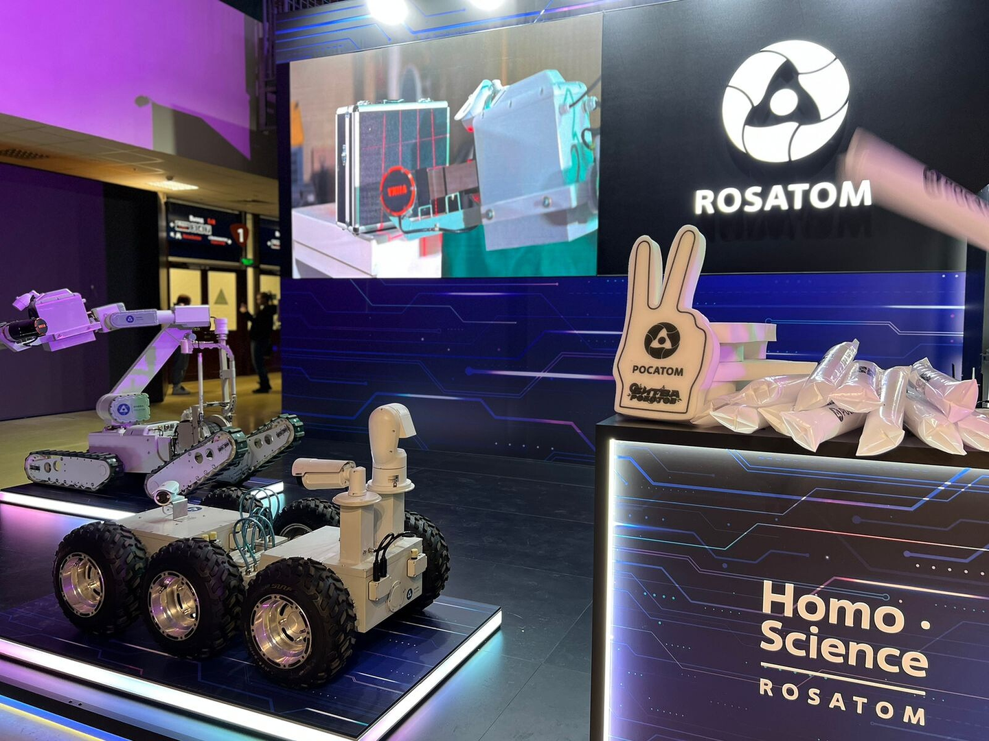 Rosatom đóng vai trò là đối tác trong một trận đấu giao hữu: hai cặp robot thi đấu trên võ đài cùng một lúc. Các đội đóng vai trò là đại sứ của Rosatom đã thể hiện một trận chiến ngoạn mục, chiến thắng thuộc về “Diamond Friends” với robot chiến đấu của họ.