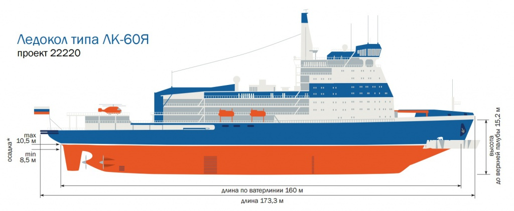 Hãy bắt đầu với dự án và thông tin kỹ thuật về nó. Sẽ rất hữu ích khi nhớ lại rằng các tàu phá băng của Dự án 22220 được phát triển bởi Cục thiết kế trung tâm "Iceberg" của OJSC để phát triển Bắc Cực, đồng thời cũng tính đến thực tế là các tàu sẽ phải đối phó với các vùng nước nông và đi vào sông. miệng. Vì lý do này, tàu phá băng hạt nhân đã nhận được một hệ thống kéo kép, một mặt, tạo ra một hạn chế nhất định và việc xây dựng và bảo trì phức tạp, như Vladimir Vorobyov, nhà thiết kế trưởng của Cục thiết kế trung tâm Iceberg, đã lưu ý vào thời điểm đó; trên mặt khác, nó đã và đang mang lại lợi nhuận kinh tế.