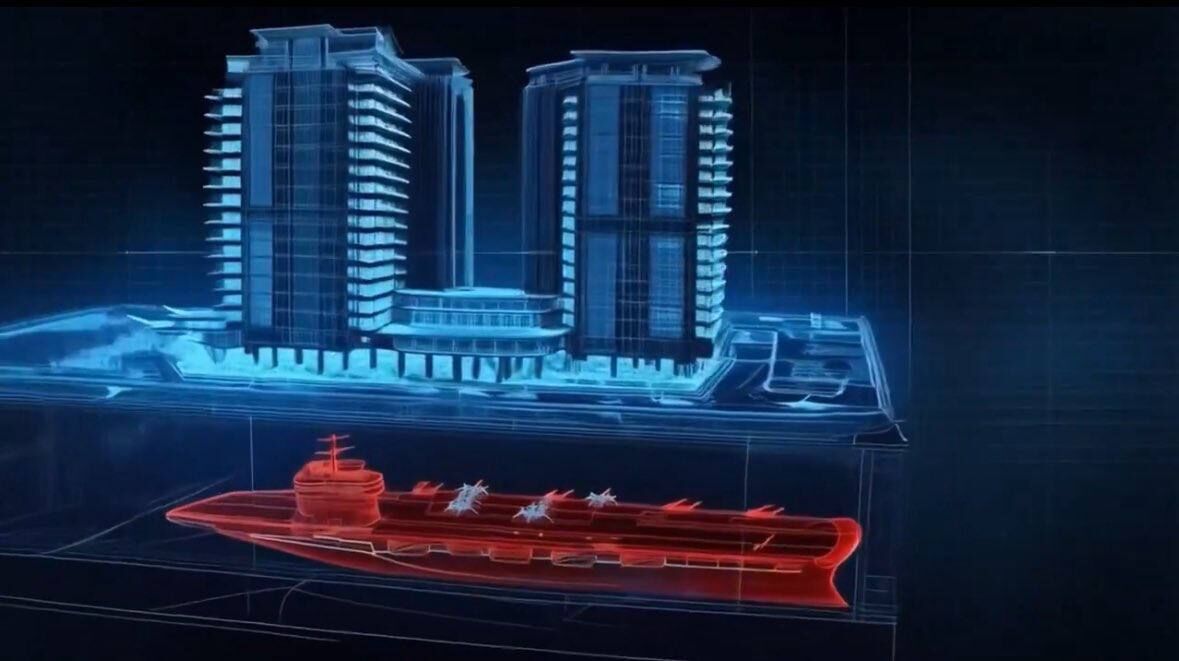 Ảnh khu trục hạm xảy ra sự cố khi hạ thuỷ của Triều Tiên được phủ bạt che đậy nhằm che dấu các bí mật quân sự.
