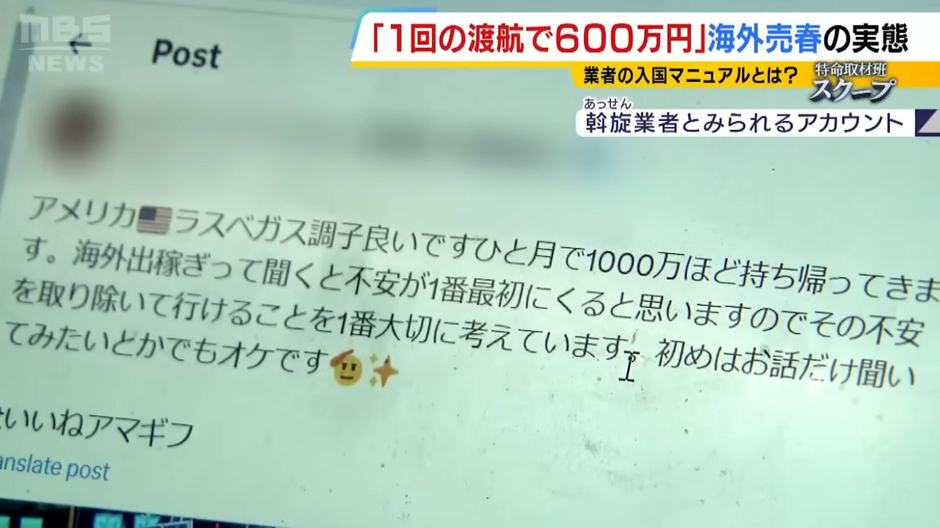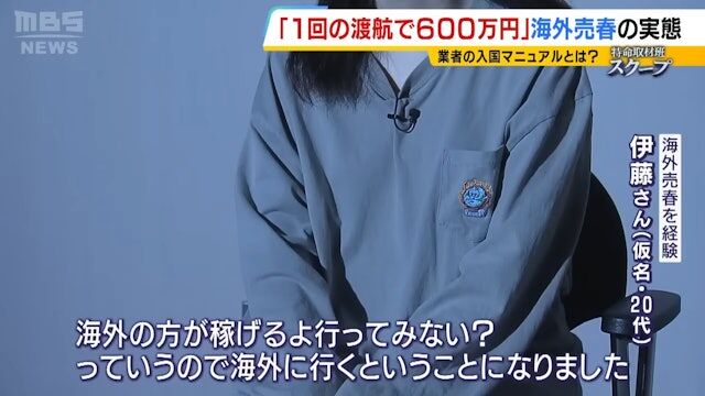 Các cuộc phỏng vấn trên truyền hình với một số "gái mại dâm ở nước ngoài" đã tiết lộ những trải nghiệm rùng rợn: Một số bị khách hàng bóp cổ dã man; Một số bị nhốt trong phòng như nô lệ; Một số người trở về, lòng biết ơn và nói: "Tôi may mắn vì không bị lấy nội tạng và cơ thể tôi vẫn còn nguyên vẹn." Nhưng vấn đề là, một số người vẫn tiếp tục ra nước ngoài với tâm lý: "Nếu người khác thành công, tôi cũng có thể."Ví dụ, Mayumi, 24 tuổi, làm việc tại Kabukicho, thú nhận rằng cô đã từng làm gái mại dâm ở Dubai.Cô nói: "Ở Nhật Bản, ngành này đã qua thời kỳ mà ai cũng có thể kiếm tiền. Nếu không muốn phá sản, bạn phải tìm cách khác." Thật không may, thực tế đã tát thẳng vào mặt cô.Cô bị ép dùng ma túy ở Dubai, khiến cô bị sang chấn tâm lý.Cô thậm chí còn khuyên mọi người không nên đi du lịch nước ngoài một cách dễ dàng. Tại sao nhiều người lại bị cám dỗ như vậy?Một phần lý do là sự sụp đổ của thị trường nội địa. Trong những năm gần đây, tình trạng "daddy living" (tìm "sugar daddy" để ăn uống và bầu bạn) đã trở nên phổ biến, với quá nhiều hoạt động mại dâm không minh bạch khiến giá cả của ngành công nghiệp tình dục hợp pháp giảm mạnh.Khách hàng ngày càng khắt khe, cạnh tranh ngày càng khốc liệt và giá bán dâm bị phá phá liên tục. Tuy nhiên, phụ nữ Nhật Bản ở nước ngoài lại được gắn mác "nhiều người tìm kiếm".Kết quả là, nhiều người nghĩ: "Thật kinh khủng! Tôi sợ đi du lịch nước ngoài một cách tùy tiện nữa." "Nếu tôi bị kết án oan thì sao? Toàn bộ tiền vé máy bay và khách sạn của tôi sẽ bị lãng phí, và tôi sẽ mang tiếng xấu." Có thể nói rằng lựa chọn của một số ít người đang ảnh hưởng tiêu cực đến cả cộng đồng.