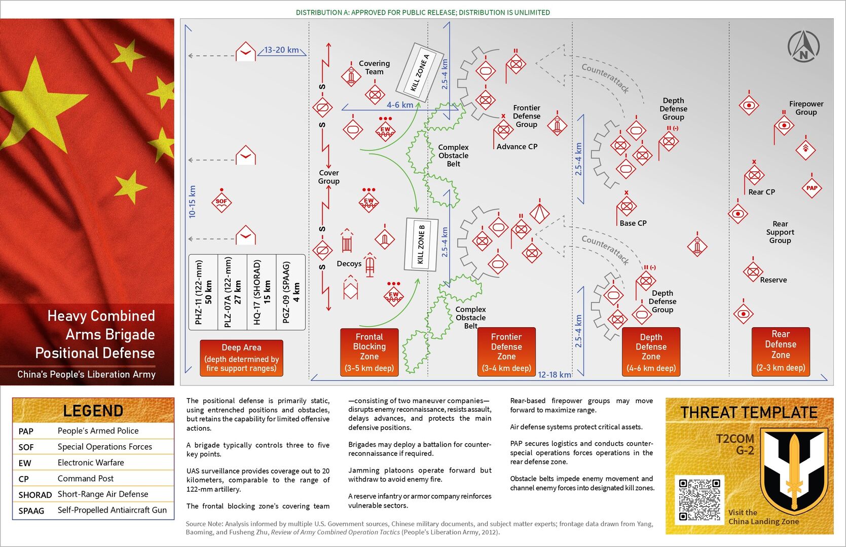 Chiến thuật và đội hình chiến đấu của lữ đoàn, tiểu đoàn hoặc đại đội cơ giới hạng nặng của Quân Giải phóng Nhân dân Trung Hoa (PLA) trong thế phòng thủ theo vị trí (xem phần tấn công