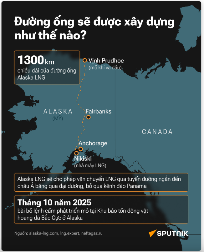Làm rõ hơn, nó sẽ có pha 1 là đường ống khí thông thường, cũng trạm nén khí và trạm lặp bơm khí cao áp từ khu mỏ khai thác khí dài khoảng 1300km đến khu vực cảng hóa lỏng khí LNG. Pha 2: sau công đoạn hóa lỏng khí, LNG sẽ rót vào các tàu chuyên dụng chở LNG (chủ yếu là phải làm lạnh -16x độ C, áp suất gần áp suất thường, trên 1 at một chút). Các tàu này sẽ chở đến khách hàng ký HĐ mua LNG.
