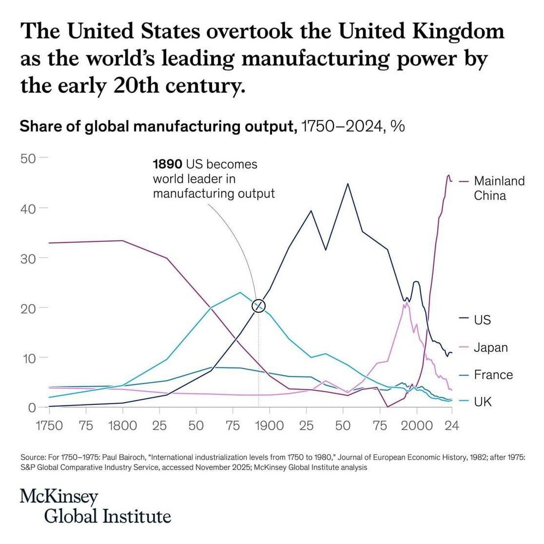 Sau Thế chiến II, Hoa Kỳ chiếm gần 50% sản lượng công nghiệp toàn cầu. Trung Quốc vừa vượt qua con số đó.