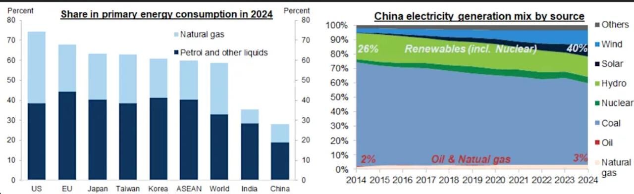 Trong khi ở Mỹ và EU, tỷ lệ nhiên liệu lỏng trong cơ cấu năng lượng là khoảng 40-44%, thì ở Trung Quốc là khoảng 28%.