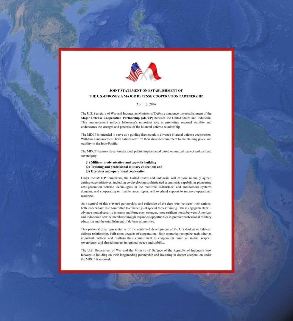 Xác nhận các báo cáo cho rằng Mỹ và Indonesia đang tìm cách tăng cường hợp tác quân sự, Bộ Quốc phòng Mỹ đã ra tuyên bố nêu chi tiết việc nâng cấp mối quan hệ quốc phòng Mỹ-Indonesia lên Đối tác Hợp tác Quân sự Chủ chốt (MDCP).