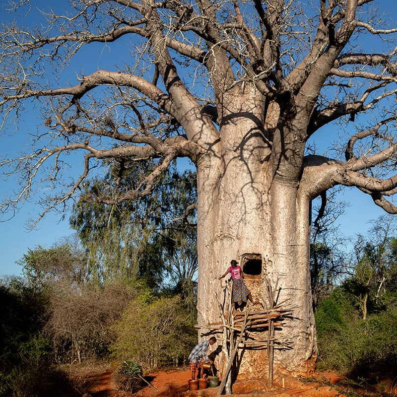 Đặc biệt, những cây bao báp cổ thụ được ví như hồ chứa nước “sống” bởi trữ lượng nước có trong cây nhiều đến kinh ngạc. Trong giai đoạn hạn hán, cây bao báp là nguồn cung cấp nước giúp duy trì sự sống của nhiều người…