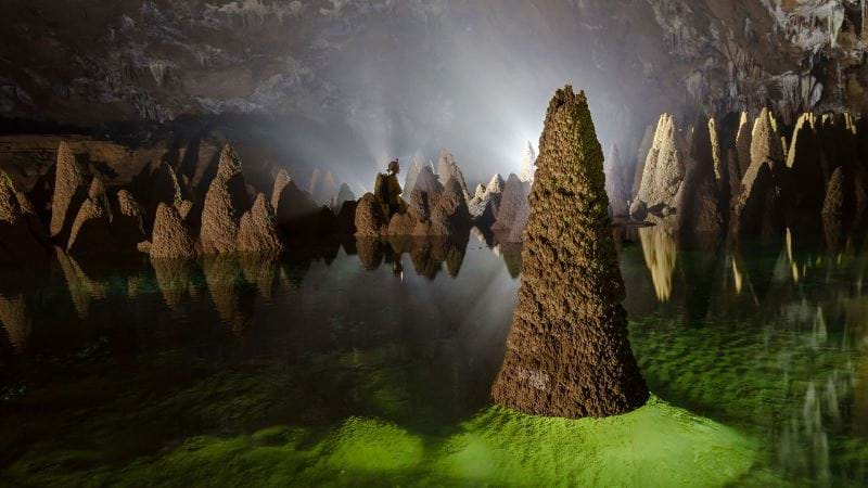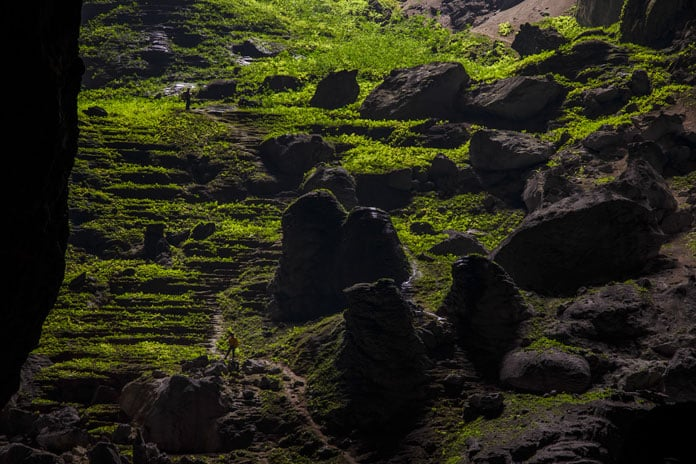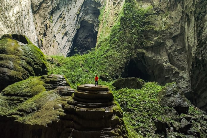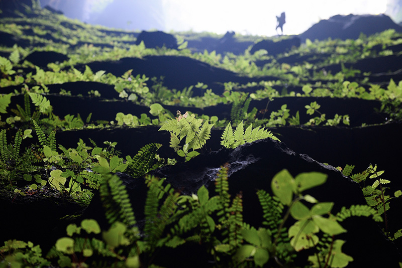 Sơn Đoòng là hang động lớn nhất thế giới với chiều dài gần 9km, vòm hang có chỗ cao trên 200m, rộng hơn 150m. Có những vị trí vòm hang bị sập xuống khoảng nửa triệu năm về trước, tạo ra những hố sụt (giếng trời) để ánh sáng chiếu vào bên trong hang. Đây cũng là cơ hội để cây cối và rêu, tảo,... phát triển. Các nhà khoa học đã tìm thấy hơn 200 loài thực vật sống trong hang động lớn nhất thế giới - Sơn Đoòng, bao gồm thực vật biểu sinh, rêu, dây leo, các loài cây bụi, cây gỗ nhỏ, cây gỗ lớn cao hơn 40m,...