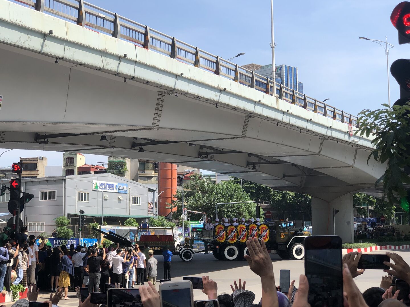 Bà Vương Thị Dung (71 tuổi, quê ở Cao Bằng) chọn một góc đứng yên lặng, hướng mắt về phía nghĩa trang, trên tay vẫn đeo chiếc đai cố định tay. Bà Dung chia sẻ sau khi kết thúc điều trị tại Bệnh viện Việt Đức, ban đầu bà dự định về nhà nhưng đã quyết định ở lại Hà Nội để tham dự lễ Quốc tang.
