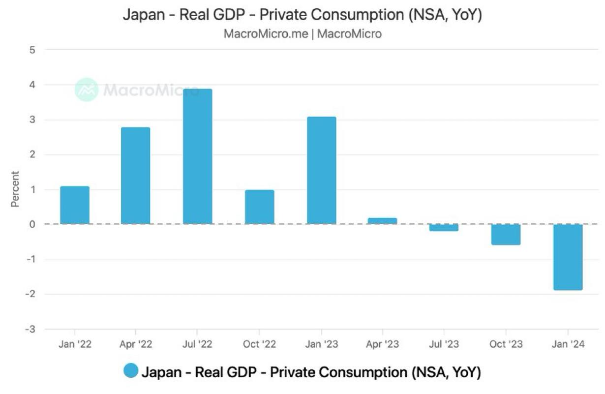 Đây là biểu đồ tiêu dùng cá nhân của Nhật, âm ở quý thứ 3 liên tiếp - người Nhật đang ngày càng ít chi tiêu hơn bởi sóng lạm phát - mà cái sóng lạm phát đó nó xuất phát từ tỷ giá - mà cái tỷ giá đó lại có đầu nguồn từ lãi suất của FED.