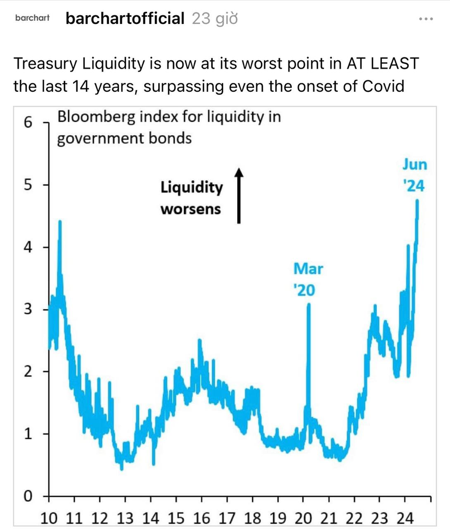 Thanh khoản Trái phiếu Kho bạc hiện đang ở điểm tồi tệ nhất trong ÍT NHẤT trong 14 năm qua, vượt qua cả thời điểm xuất hiện của Covid.