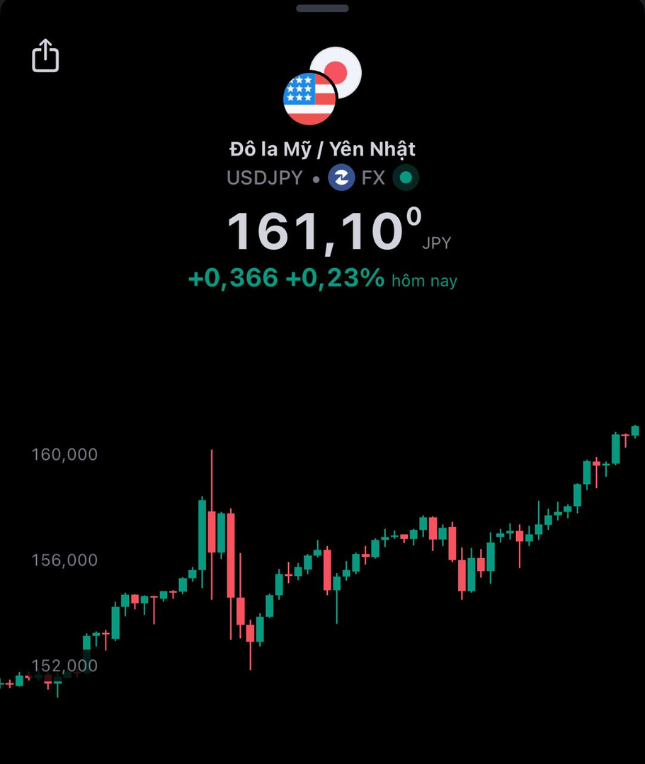 Sự sụt giảm của Yên Nhật tiếp tục xảy ra khi nó rơi xuống mức thấp mới trong 38 năm so với Đô la Mỹ và phá vỡ mức 161