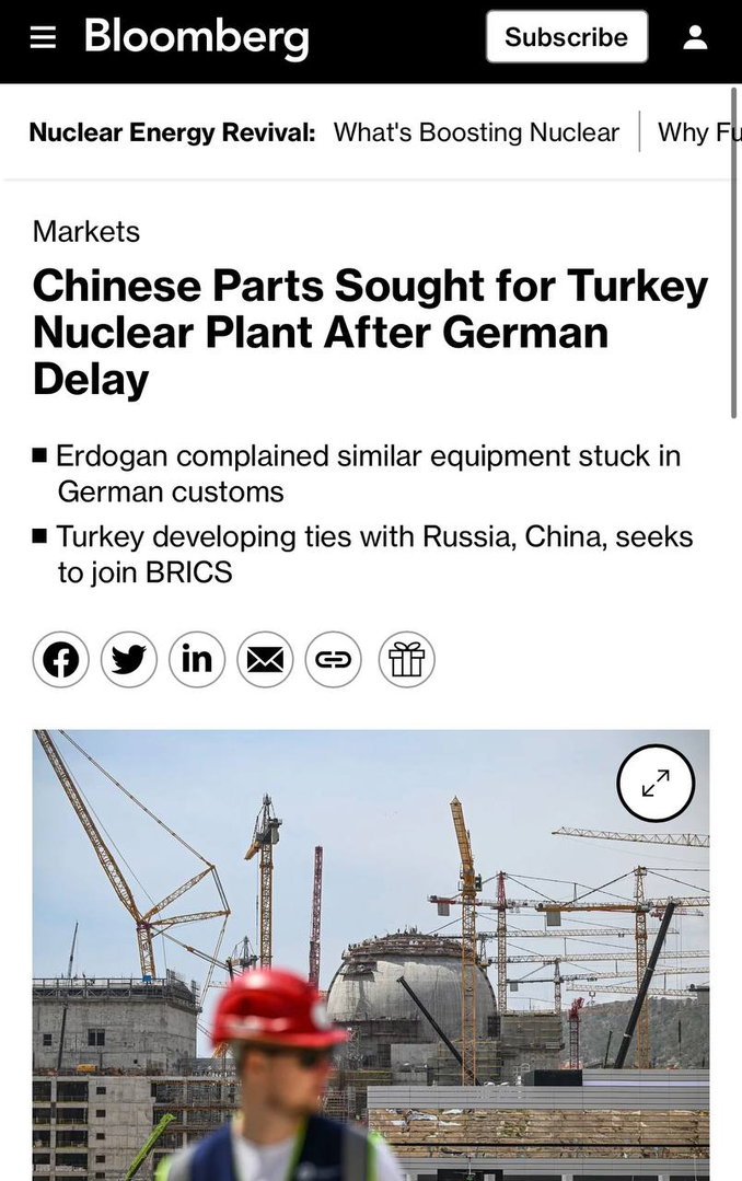 Rosatom đã đặt hàng thiết bị thay thế ở Trung Quốc cho nhà máy điện hạt nhân đầu tiên của Thổ Nhĩ Kỳ, do sự chậm trễ giao hàng từ công ty Siemens Energy AG của Đức có nguy cơ làm hỏng dự án - Bloomberg báo cáo